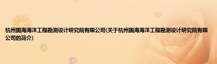 杭州国海海洋工程勘测设计研究院有限公司(关于杭州国海海洋工程勘测设计研究院有限公司的简介)