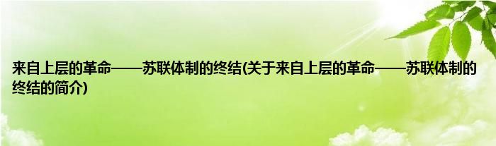 本文关于来自上层的革命——苏联体制的终结的简介就讲解完毕,希望对大家有所帮助。