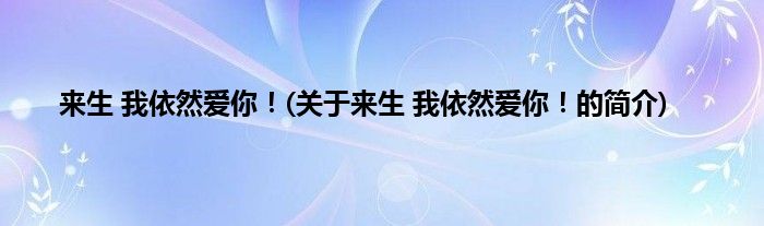 大家好,来生,我依然爱你!,关于来生,我依然爱你!的简介很多人还不知道,现在让我们一起来看看吧!