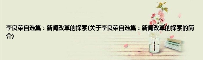 本文关于李良荣自选集:新闻改革的探索的简介就讲解完毕,希望对大家有所帮助。