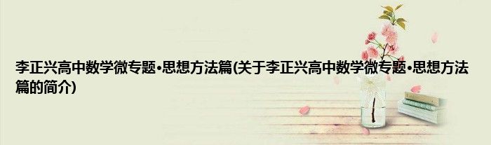 李正兴高中数学微专题·思想方法篇(关于李正兴高中数学微专题·思想方法篇的简介)