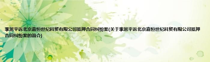 本文关于李恩平诉北京嘉恒世纪科贸有限公司抵押合同纠纷案的简介就讲解完毕,希望对大家有所帮助。