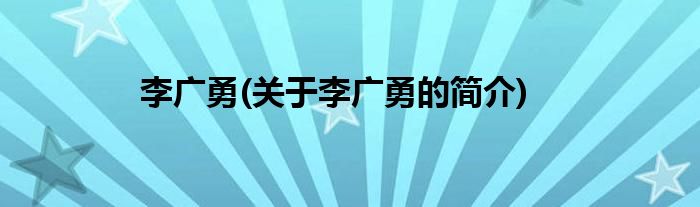 大家好,李广勇,关于李广勇的简介很多人还不知道,现在让我们一起来看看吧!