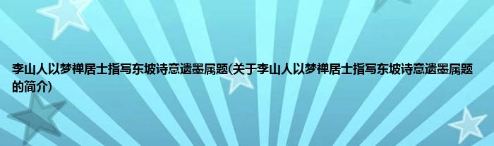 本文关于李山人以梦禅居士指写东坡诗意遗墨属题的简介就讲解完毕,希望对大家有所帮助。