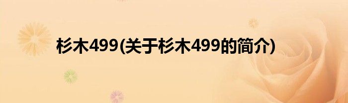 大家好,杉木499,关于杉木499的简介很多人还不知道,现在让我们一起来看看吧!