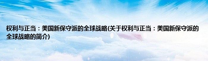 本文关于权利与正当:美国新保守派的全球战略的简介就讲解完毕,希望对大家有所帮助。