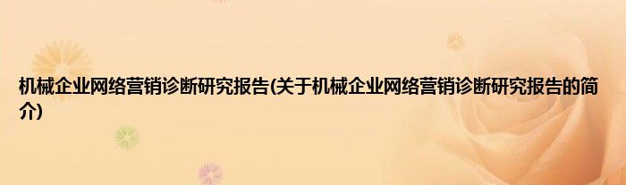 大家好,机械企业网络营销诊断研究报告,关于机械企业网络营销诊断研究报告的简介很多人还不知道,现在让我们一起来看看吧!