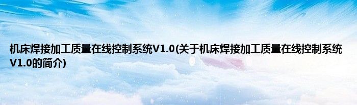 机床焊接加工质量在线控制系统V1.0(关于机床焊接加工质量在线控制系统V1.0的简介)