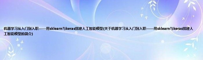 本文关于机器学习从入门到入职——用sklearn与keras搭建人工智能模型的简介就讲解完毕,希望对大家有所帮助。