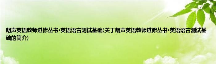 本文关于朗声英语教师进修丛书·英语语言测试基础的简介就讲解完毕,希望对大家有所帮助。