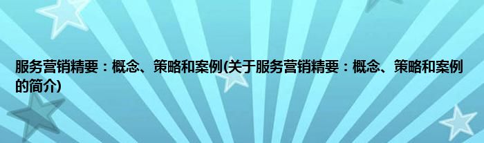 大家好,服务营销精要:概念、策略和案例,关于服务营销精要:概念、策略和案例的简介很多人还不知道,现在让我们一起来看看吧!