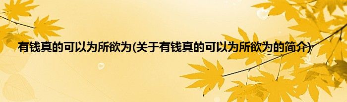 本文关于有钱真的可以为所欲为的简介就讲解完毕,希望对大家有所帮助。