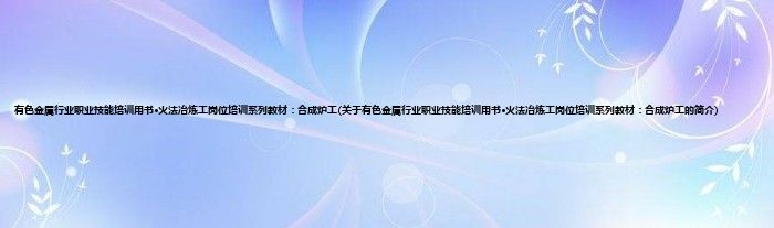 本文关于有色金属行业职业技能培训用书·火法冶炼工岗位培训系列教材:合成炉工的简介就讲解完毕,希望对大家有所帮助。