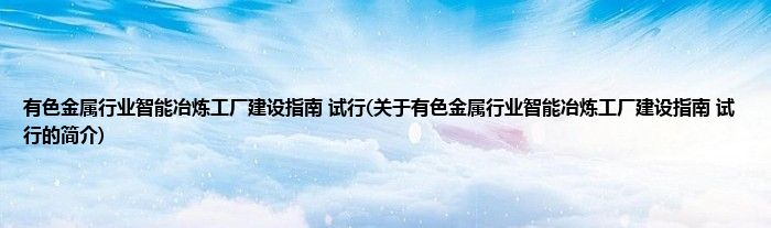 本文关于有色金属行业智能冶炼工厂建设指南 试行的简介就讲解完毕,希望对大家有所帮助。