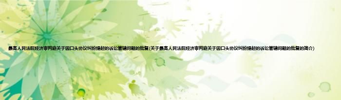 最高人民法院经济审判庭关于因口头协议纠纷提起的诉讼管辖问题的批复(关于最高人民法院经济审判庭关于因口头协议纠纷提起的诉讼管辖问题的批复的简介)