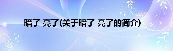 本文关于暗了,亮了的简介就讲解完毕,希望对大家有所帮助。