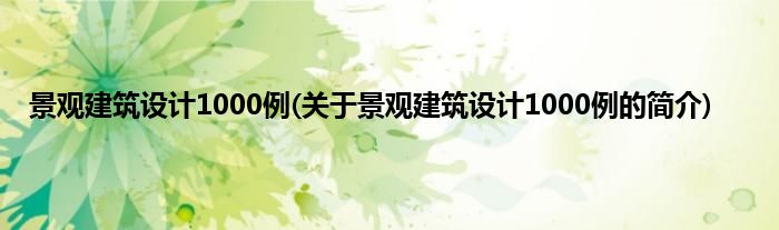 本文关于景观建筑设计1000例的简介就讲解完毕,希望对大家有所帮助。