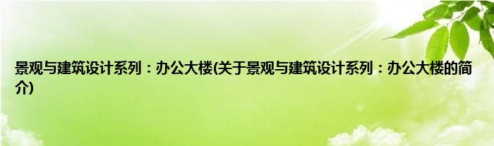 大家好,景观与建筑设计系列:办公大楼,关于景观与建筑设计系列:办公大楼的简介很多人还不知道,现在让我们一起来看看吧!