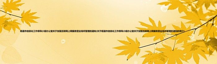 大家好,昭通市信息化工作领导小组办公室关于加强互联网上网服务营业场所管理的通知,关于昭通市信息化工作领导小组办公室关于加强互联网上网服务营业场所管理的通知的简介很多人还不知道,现在让我们一起来看看吧!