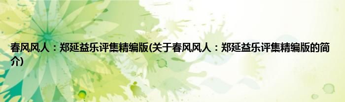 本文关于春风风人:郑延益乐评集精编版的简介就讲解完毕,希望对大家有所帮助。