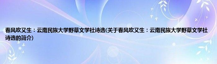 本文关于春风吹又生:云南民族大学野草文学社诗选的简介就讲解完毕,希望对大家有所帮助。