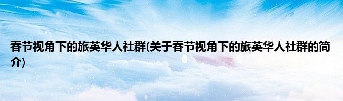 大家好,春节视角下的旅英华人社群,关于春节视角下的旅英华人社群的简介很多人还不知道,现在让我们一起来看看吧!