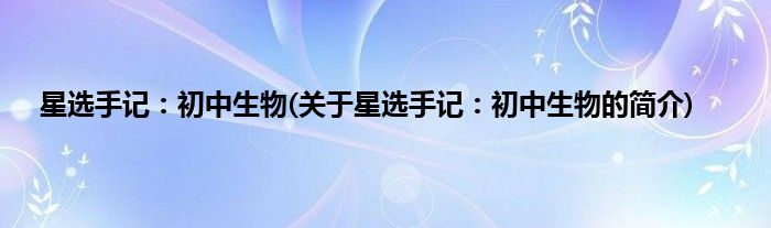 本文关于星选手记:初中生物的简介就讲解完毕,希望对大家有所帮助。