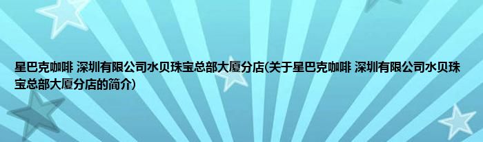 本文关于星巴克咖啡 深圳有限公司水贝珠宝总部大厦分店的简介就讲解完毕,希望对大家有所帮助。