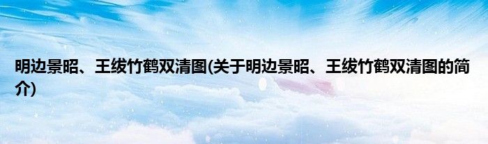 本文关于明边景昭、王绂竹鹤双清图的简介就讲解完毕,希望对大家有所帮助。