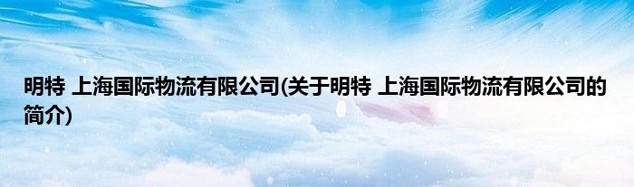 明特 上海国际物流有限公司(关于明特 上海国际物流有限公司的简介)