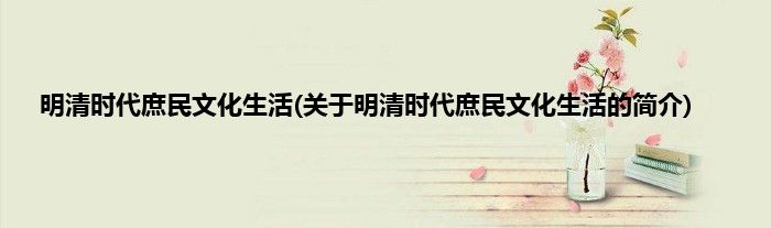 本文关于明清时代庶民文化生活的简介就讲解完毕,希望对大家有所帮助。