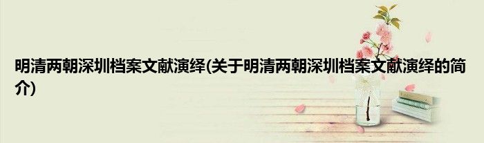 本文关于明清两朝深圳档案文献演绎的简介就讲解完毕,希望对大家有所帮助。