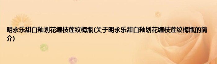 明永乐甜白釉划花缠枝莲纹梅瓶(关于明永乐甜白釉划花缠枝莲纹梅瓶的简介)