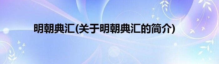 大家好,明朝典汇,关于明朝典汇的简介很多人还不知道,现在让我们一起来看看吧!