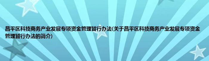 大家好,昌平区科技商务产业发展专项资金管理暂行办法,关于昌平区科技商务产业发展专项资金管理暂行办法的简介很多人还不知道,现在让我们一起来看看吧!