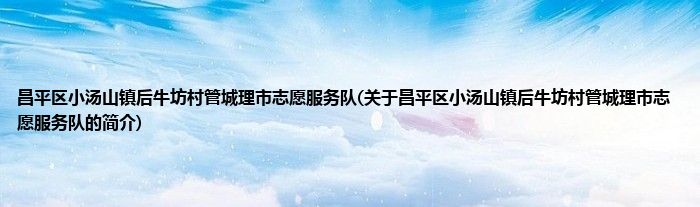 本文关于昌平区小汤山镇后牛坊村管城理市志愿服务队的简介就讲解完毕,希望对大家有所帮助。