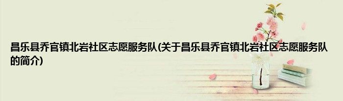 本文关于昌乐县乔官镇北岩社区志愿服务队的简介就讲解完毕,希望对大家有所帮助。