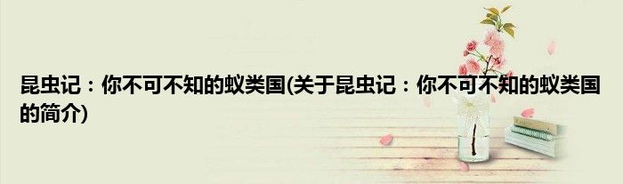 本文关于昆虫记:你不可不知的蚁类国的简介就讲解完毕,希望对大家有所帮助。