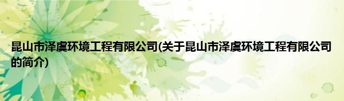本文关于昆山市泽虞环境工程有限公司的简介就讲解完毕,希望对大家有所帮助。