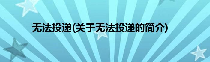 大家好,无法投递,关于无法投递的简介很多人还不知道,现在让我们一起来看看吧!