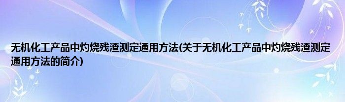 本文关于无机化工产品中灼烧残渣测定通用方法的简介就讲解完毕,希望对大家有所帮助。