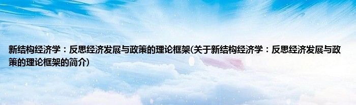 大家好,新结构经济学:反思经济发展与政策的理论框架,关于新结构经济学:反思经济发展与政策的理论框架的简介很多人还不知道,现在让我们一起来看看吧!