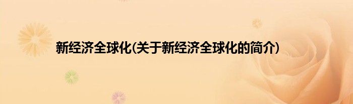 本文关于新经济全球化的简介就讲解完毕,希望对大家有所帮助。
