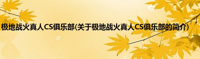 极地战火真人CS俱乐部(关于极地战火真人CS俱乐部的简介)