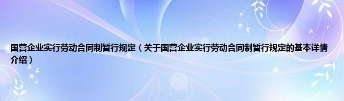 国营企业实行劳动合同制暂行规定(关于国营企业实行劳动合同制暂行规定的基本详情介绍)