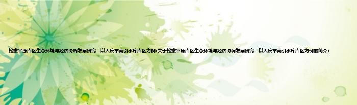 本文关于松嫩平原库区生态环境与经济协调发展研究:以大庆市南引水库库区为例的简介就讲解完毕,希望对大家有所帮助。