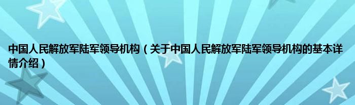 本文关于中国人民解放军陆军领导机构的基本详情介绍就讲解完毕,希望对大家有所帮助。