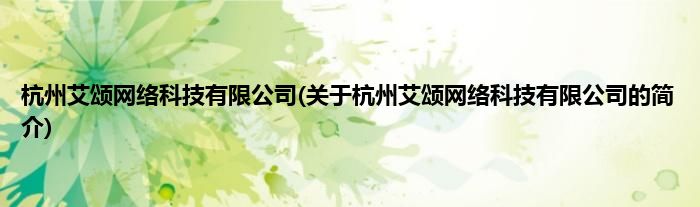 本文关于杭州艾颂网络科技有限公司的简介就讲解完毕,希望对大家有所帮助。