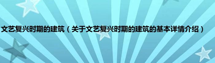 本文关于文艺复兴时期的建筑的基本详情介绍就讲解完毕,希望对大家有所帮助。