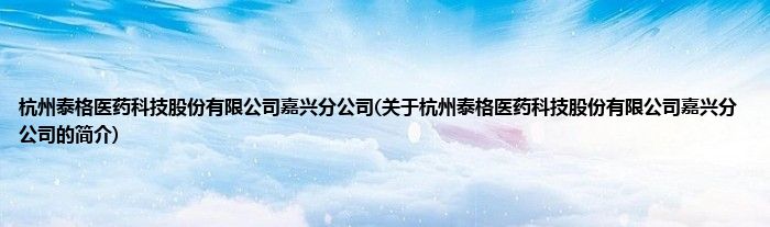 杭州泰格医药科技股份有限公司嘉兴分公司(关于杭州泰格医药科技股份有限公司嘉兴分公司的简介)